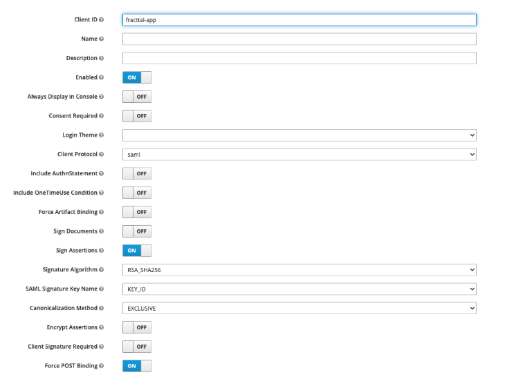 | Client Protocol | saml | Defines the SAML protocol |