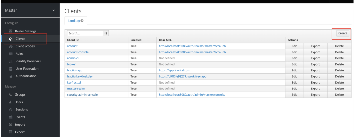 - In the side menu, select: Configure → Clients.