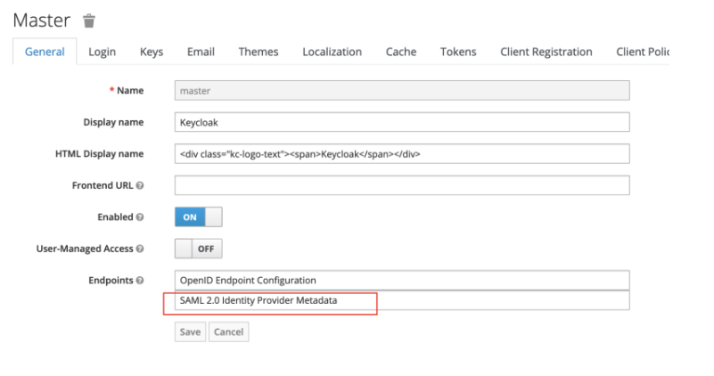 | Single Logout URL | http://localhost:8080/auth/realms/master/protocol/saml |